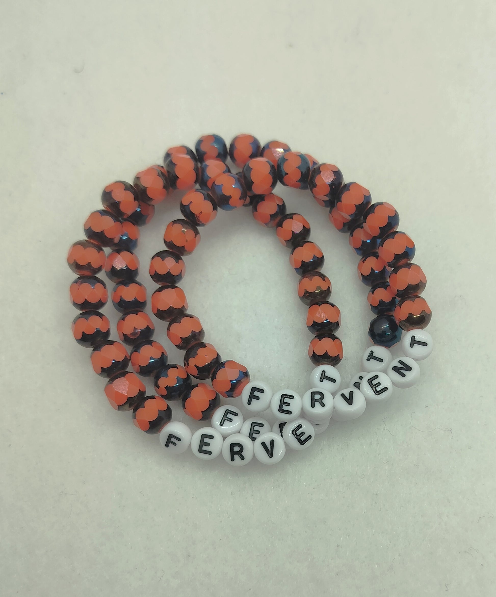 **Fervent-Orange and Blue Beaded Word Bracelet**!