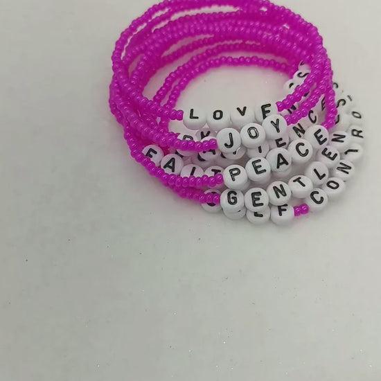 Each bracelet represents one of the Fruits of the Spirit: Love, Joy, Peace, Patience, Kindness, Goodness, Faithfulness, Gentleness, and Self-Control.