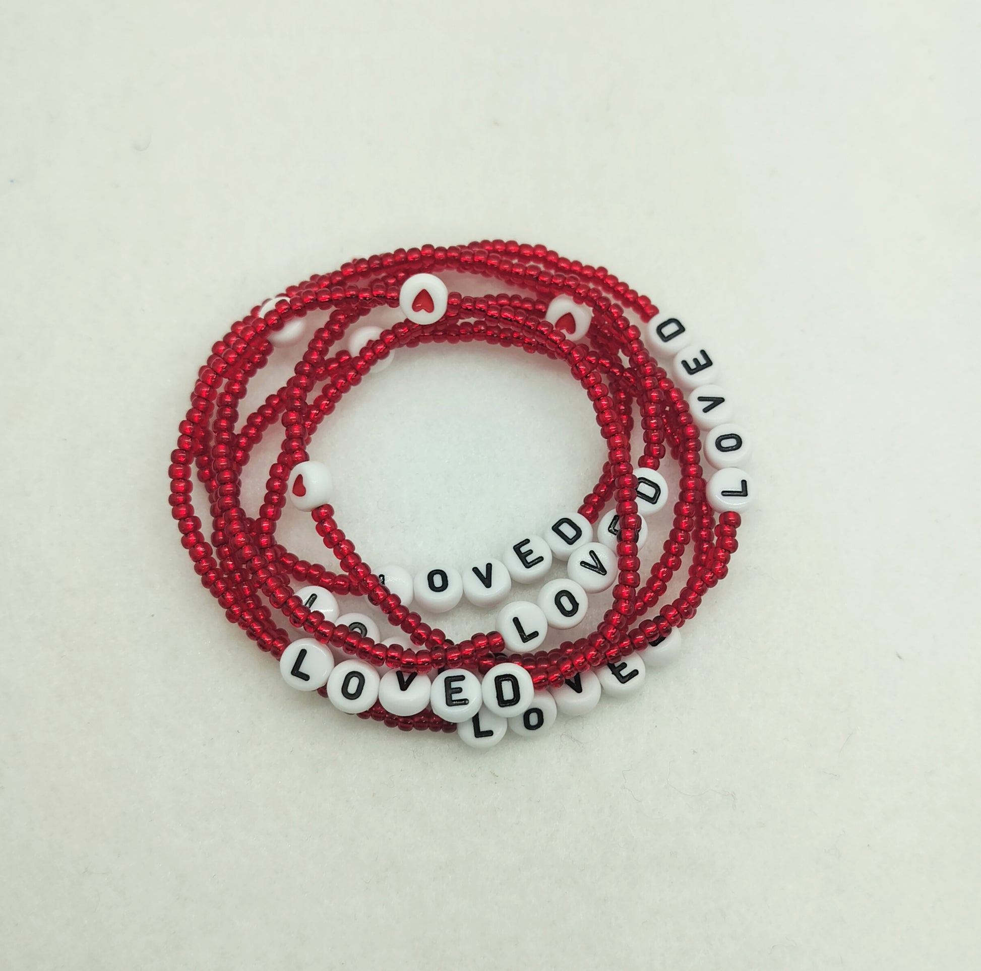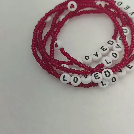 Wrap your wrist in a reminder of God’s love with this **"Loved" Beaded Word Bracelet**.